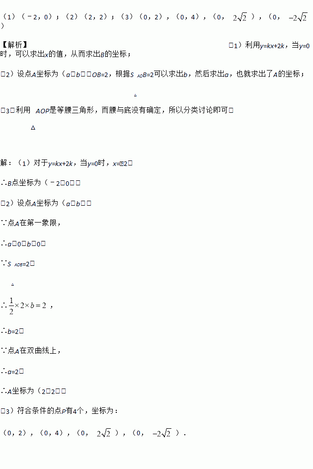 如图,直线y=kx+2k(k≠0)与x轴交于点B,与双曲线