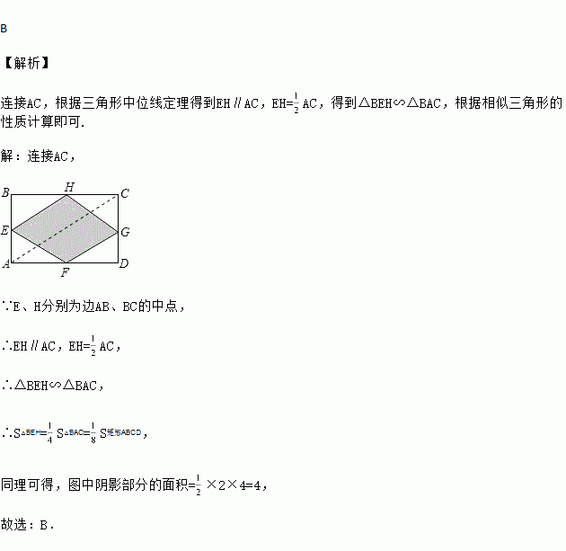 如图,在矩形ABCD中,E,F,G,H分别为边AB,DA,CD,BC的中点.若AB=2,AD=4,则图中阴影部分的面积为( )