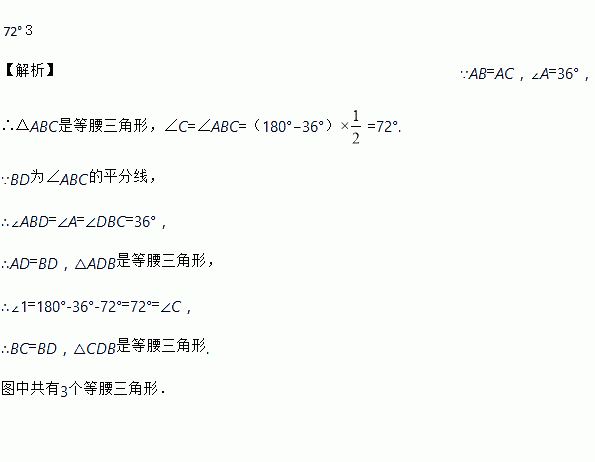 ¡÷ABCÖУ¬AB=AC£¬¡ÏA=36¡ã£¬BDƽ·Ö¡ÏABC£¬Ôò¡Ï1 =_______¶È£¬´ËÈý½ÇÐÎÓÐ_______¸öµÈÑüÈý½ÇÐΣ®