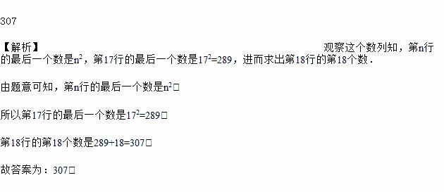 照此规律,按从上到下、从左到右的顺序,第18行的第18个数是_____.