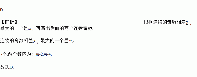 已知三个连续奇数,最大的一个是m,用代数式表示其他两个数应为( ).