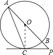 分析:连接OC,利用同弧所对的圆周角等于所对圆心角的一半求出∠COP的度数,由PC为圆O的切线,利用切线的性质得到OC垂直于CP,在直角三角形OPC中,利用直角三角形的两锐角互余即可求出∠P的度数.