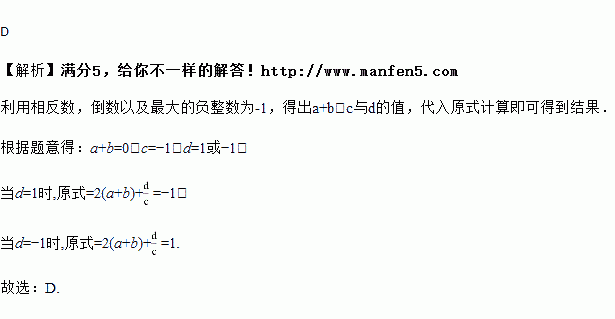 、互为相反数,为最大的负整数,的倒数是它本身,则的值是( )