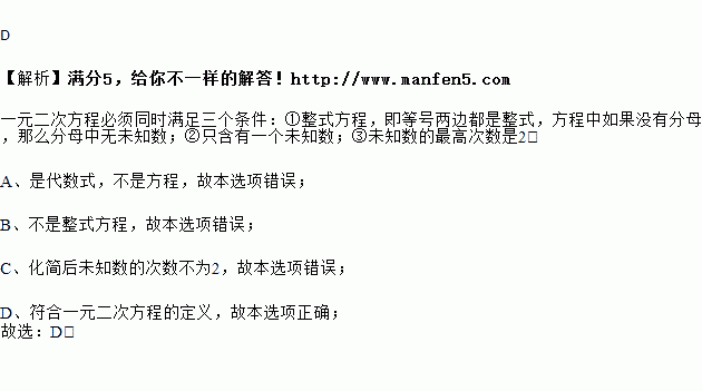 下列方程是关于的一元二次方程的是( )