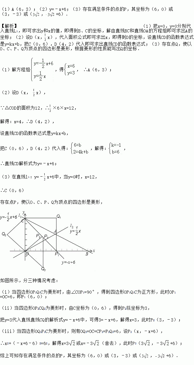 (3)在(2)的条件下,设P是射线CD上的点,在平面内是否存在点Q,使以O、C、P、Q为顶点的四边形是菱形?若存在,直接写出点P的坐标;若不存在,请说明理由.