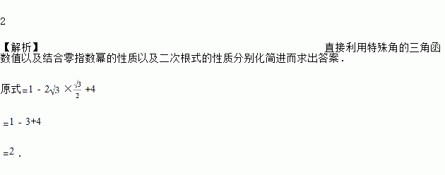 计算:(﹣1)0﹣×sin60°+(﹣2)2 .