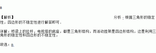 桥梁上的拉杆,电视塔的底座,都是三角形结构,而活动挂架是四边形结构,这是分别利用三角形和四边形的( )