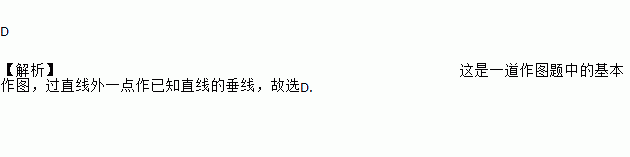 D 【解析】这是一道作图题中的基本作图,过直线外一点作已知直线的垂线,故选D.
