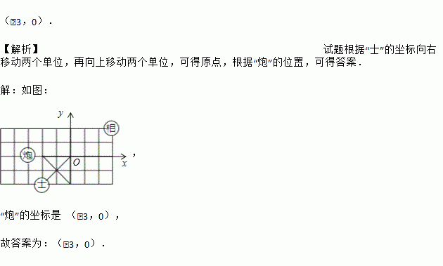 如图所示的象棋盘上,若“士”的坐标是(﹣2,﹣2),“相”的坐标是(3,2),则“炮”的坐标是 .