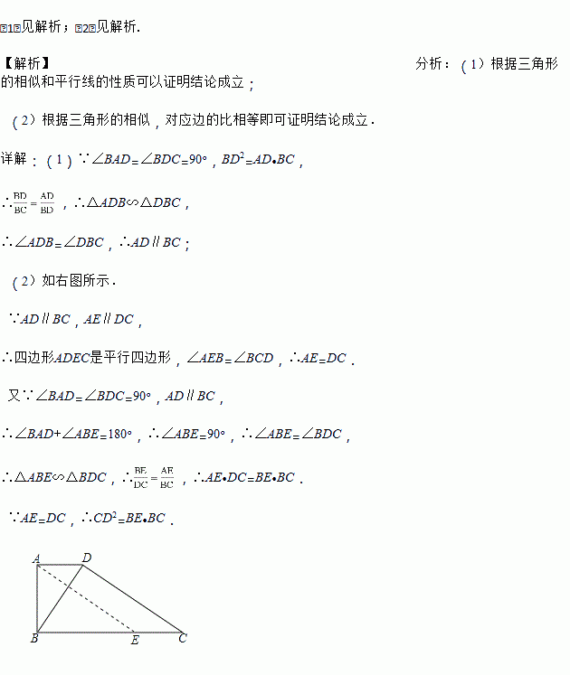 已知四边形ABCD中,∠BAD=∠BDC=90°,BD2=AD•BC.