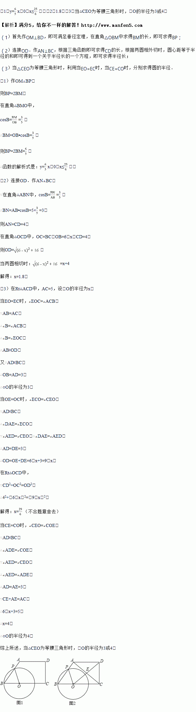 (1)设OB=x,BP=y,求y与x的函数关系式,并写出函数定义域;