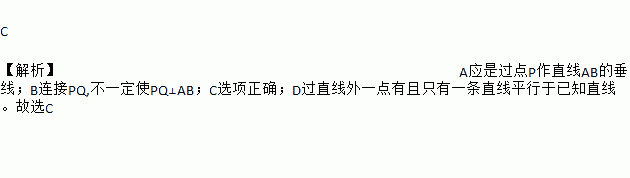 B. P是直线AB外一点,Q是直线AB上一点,连接PQ,使PQ⊥AB.