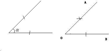 分析:可先做一条射线OB,以∠α的顶点为圆心,以任意长为半径画弧,交∠α的两边于两点;以点O为圆心,刚才的半径为半径,交射线OB于一点,以这点为圆心,∠α两边上两点的距离为半径画弧,交前弧于一点,过这点做射线OA,∠AOB就是所求的角.