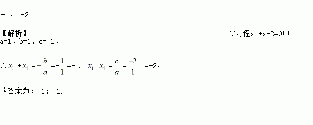 -1, -2 【解析】∵方程x²+x?2=0中a=1,b=1,c=?2, ∴+==?=?1, == =?2, 故答案为:?1;?2.