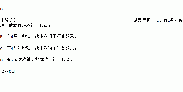 下列轴对称图形中,对称轴的数量小于3的是: