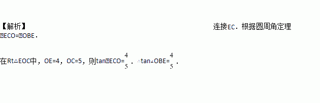 如图,点E(0,4),O(0,0),C(5,0)在⊙A上,BE是⊙A上的一条弦,则tan∠OBE=___________.