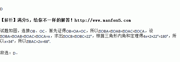 A. 44° B. 58° C. 64° D. 68°