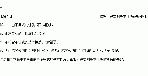 A. a-3<b-3 B. > C. 3a>2b D. 3+a>3+b