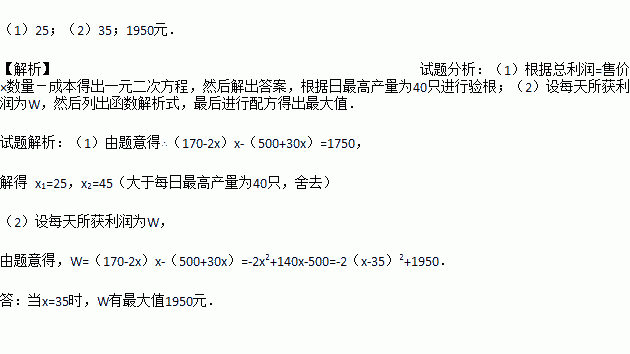 (1)当日产量为多少时,每日获得的利润为1750元?