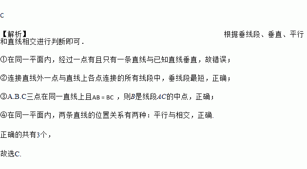 连接直线外一点与直线上各点的所有线段中,垂线段最短;![]()