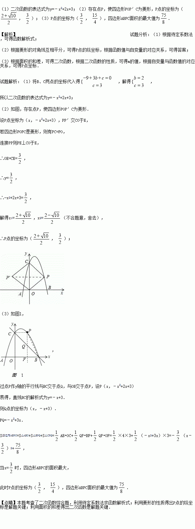 (3)当点P运动到什么位置时,四边形 ABPC的面积最大,并求出此时点P的坐标和四边形ABPC的最大面积.