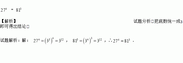 (本题满分6分)比较274与813的大小,并说明理由.