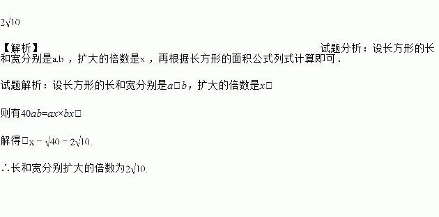 把一个长方形的长和宽分别扩大相同的倍数,使面积扩大40倍,求长和宽分别扩大的倍数.(结果保留根号)