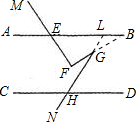 分析:延长NG交AB于L,FG交AB于0,根据对顶角相等及平行线的性质可得出∠FGH的度数.