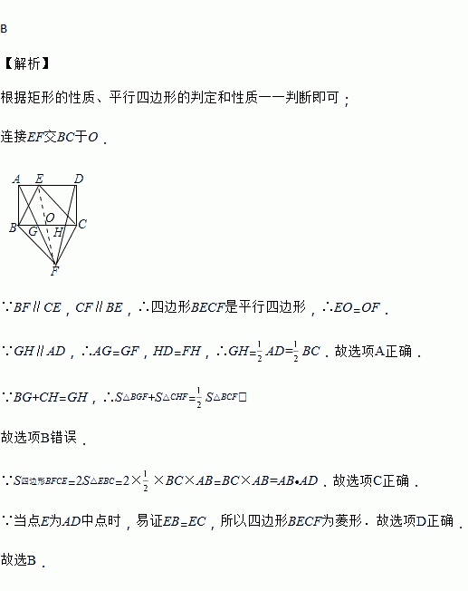 如图,点E是矩形ABCD边AD上的一个动点,且与点A、点D不重合,连结BE、CE,过点B作BF∥CE,过点C作CF∥BE,交点为F点,连接AF、DF分别交BC于点G、H,则下列结论错误的是( )
