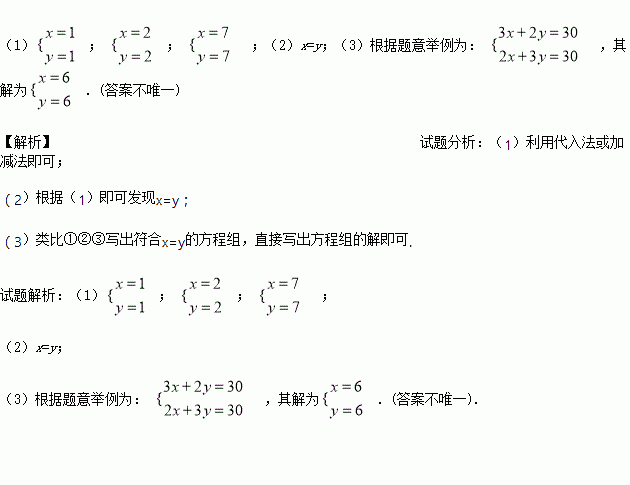 (2)以上每个方程组的解中,x值与y值的大小关系为 ;