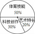 25÷50×100%=50%,体育技能的人数所占的百分比为10÷50×100%=20%,