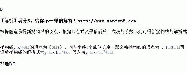 将抛物线y=x2+3向左平移1个单位长度后,得到的抛物线的解析式是( )