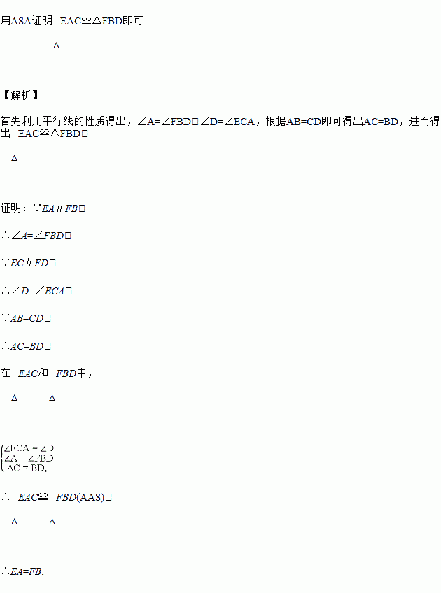 已知:如图点A、B、C、D在一条直线上,EA∥FB,EC∥FD,AB=CD,求证:EA=FB.