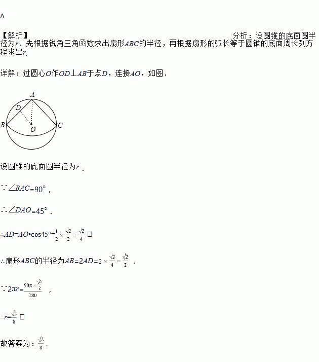 如图,从一块直径是1m的圆形铁皮上剪出一个圆心角为90°的扇形,如果将剪下来的扇形围成一个圆锥,圆锥的底面圆的半径是多少?( )