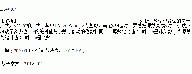 据媒体报道,我国最新研制的“察打一体”无人机的速度极快,经测试最高速度可达204000米/分,204000这个数用科学记数法表示为________.