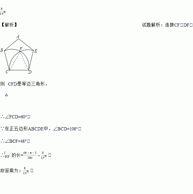 如图,正五边形ABCDE的边长为2,分别以点C、D为圆心,CD长为半径画弧,两弧交于点F,则
