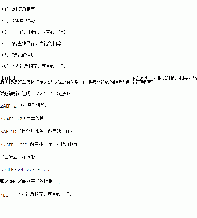 即∠GEF=∠HFE ( ).
