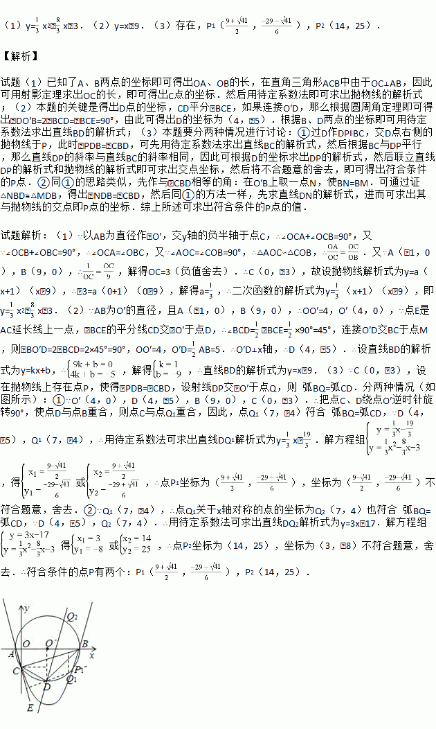(2)点E是AC延长线上一点,∠BCE的平分线CD交⊙O′于点D,连结BD,求直线BD的解析式;