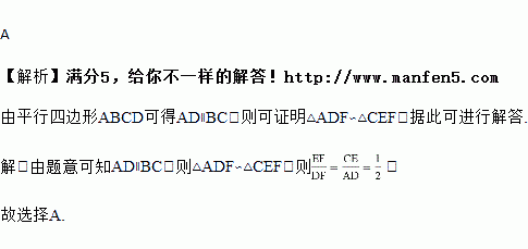 如图,在平行四边形ABCD中,E为BC的中点,DE、AC交于点F,则的值为( )