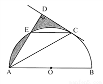 (2)若E是弧AC的中点,⊙O 的半径为1,求图中阴影部分的面积。