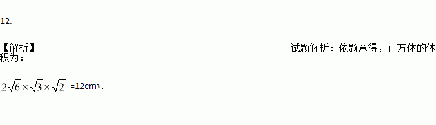 若一个长方体的长为cm,宽为cm,高为cm,则它的体积为 cm3.
