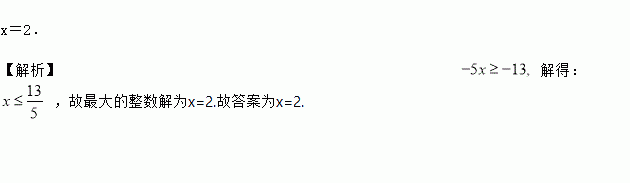 不等式-5x≥-13的解集中,最大的整数解是__________.