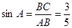 解析试题分析:先根据勾股定理求得斜边AB的长,再根据正弦的定义即可求得结果.