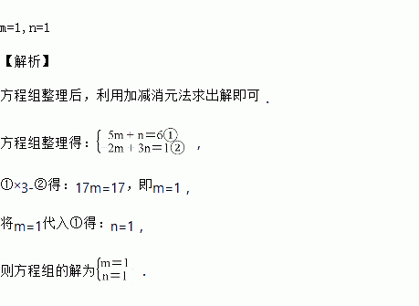 已知关于x,y的方程x2m-n-2+4ym+n+1=6是二元一次方程,则m,n的值为( )