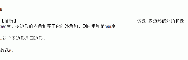 已知一个多边形的内角和等于它的外角和,则这个多边形的边数为