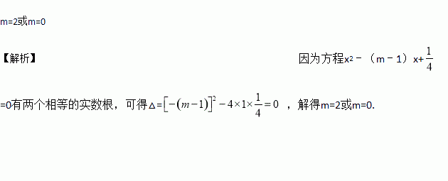如果方程x2﹣(m﹣1)x+=0有两个相等的实数根,则m的值为______.