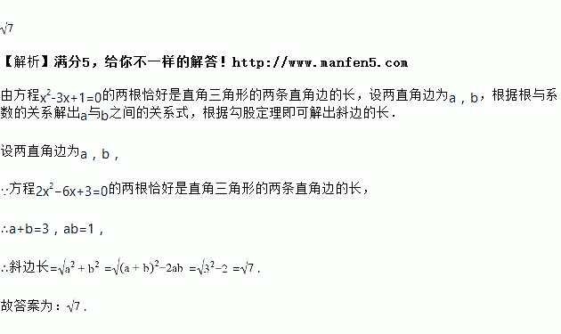 若方程的两根是的两条直角边的长,则这个三角形的斜边的长是________.