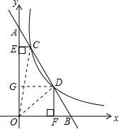 (3)根据S五边形EOFDC=S四边形EGDC+S四边形GOFD,求出五边形的面积,再根据反比例函数的几何意义,求出S三角形EOC=S三角形DOF=3,相减即可得到△OCD的面积.