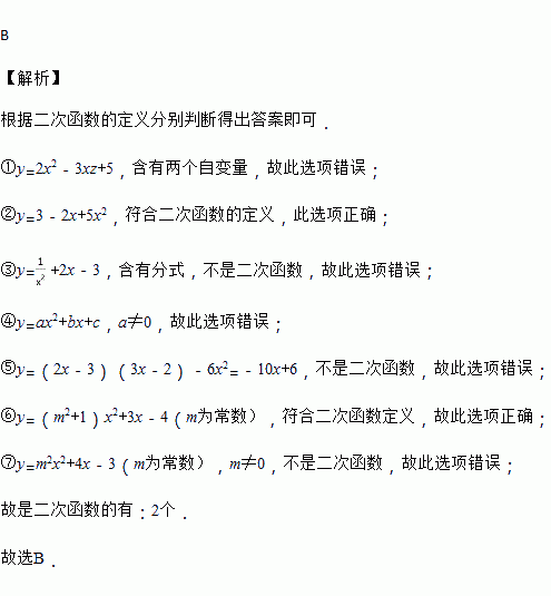 ①;②;③;④;⑤;⑥(为常数);⑦(为常数).是二次函数的有( )