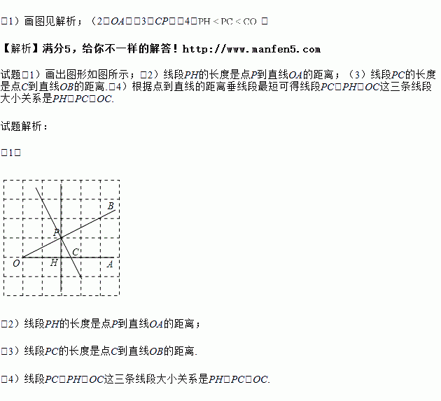 (1)过点P画OB的垂线,交OA于点C;过点P画OA的垂线,垂足为H;